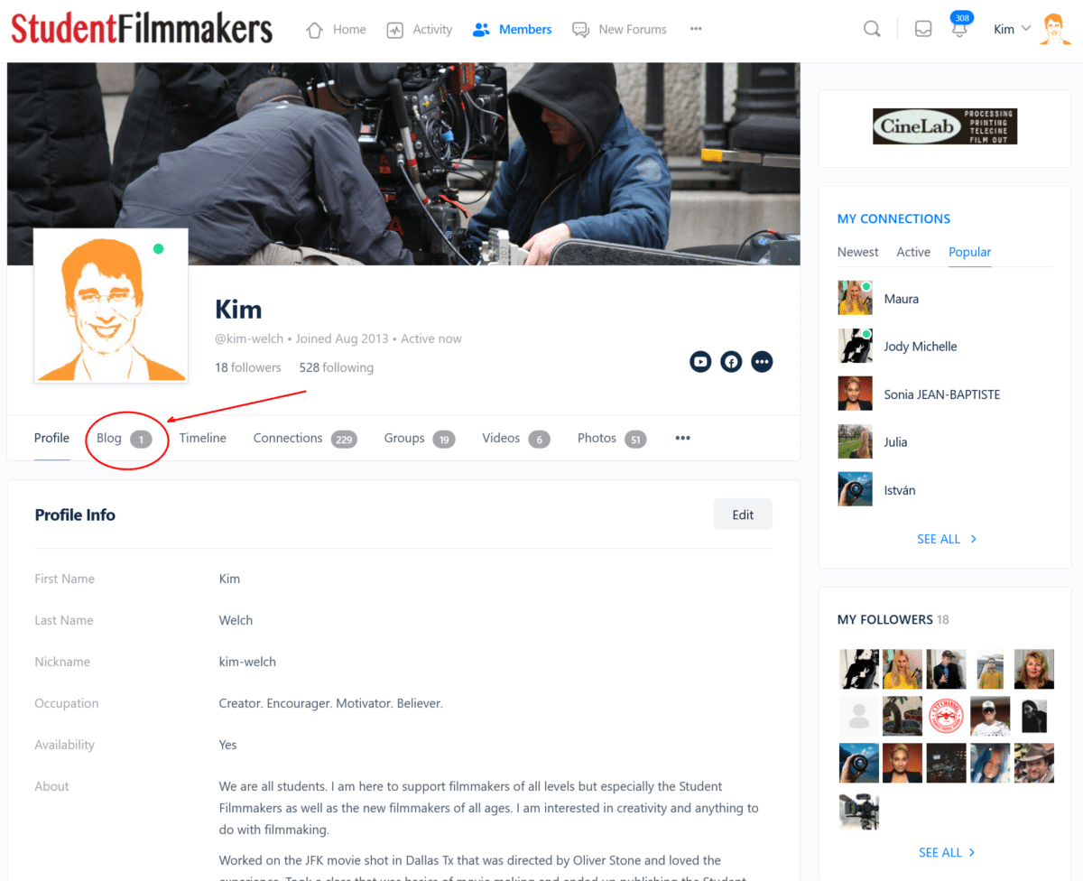 I am Happy to announce a new feature for our members! You can now post in your profile under your blog, and it will be featured on the home page and be in your blog at www.www.studentfilmmakers.com